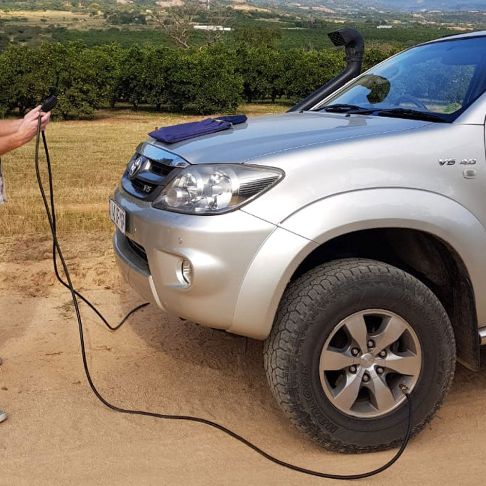 - Two x 7m Air hoses that are Highly flexible and easy to use; abrasion and ozone resistant and can withstand pressures of up to 2000kpa(300psi) and temperatures of -10’C to +60’C.